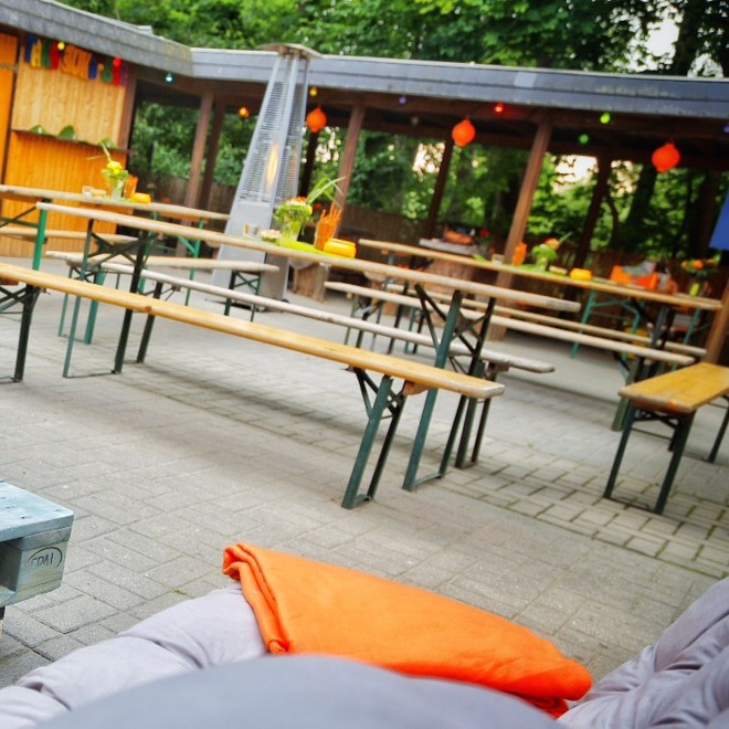 Nach dem Flohmarktbummel könnt ihr euch bei Kaffee, Kuchen und Kaltgetränken im StuK-Biergarten entspannen.